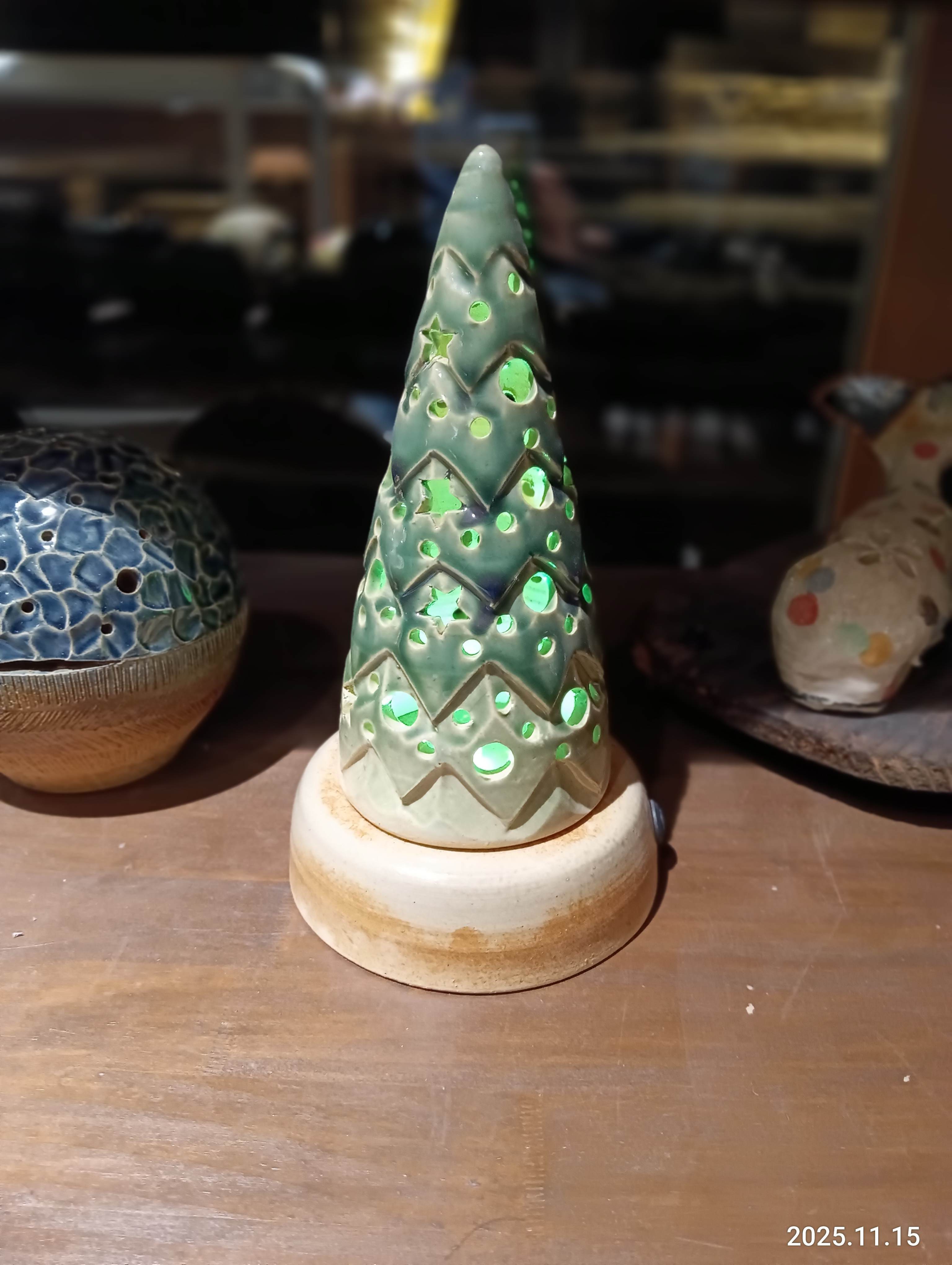 当工房オリジナルのハンドメイドの陶器ランプシェード。スタイリッシュなツリー型のランプシェードです。