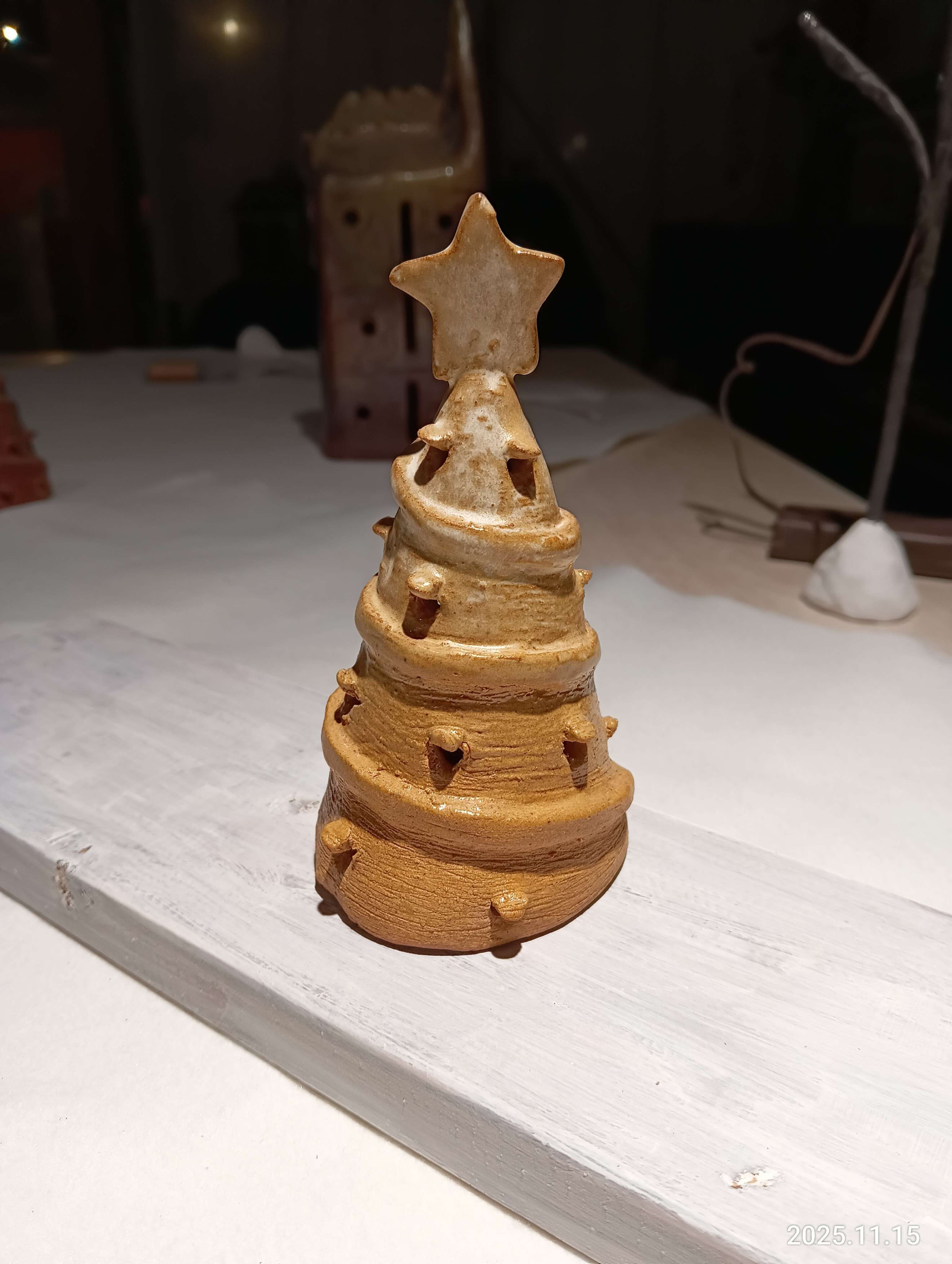 当工房オリジナルのハンドメイドの陶器ランプシェード。スタイリッシュなツリー型のランプシェードです。