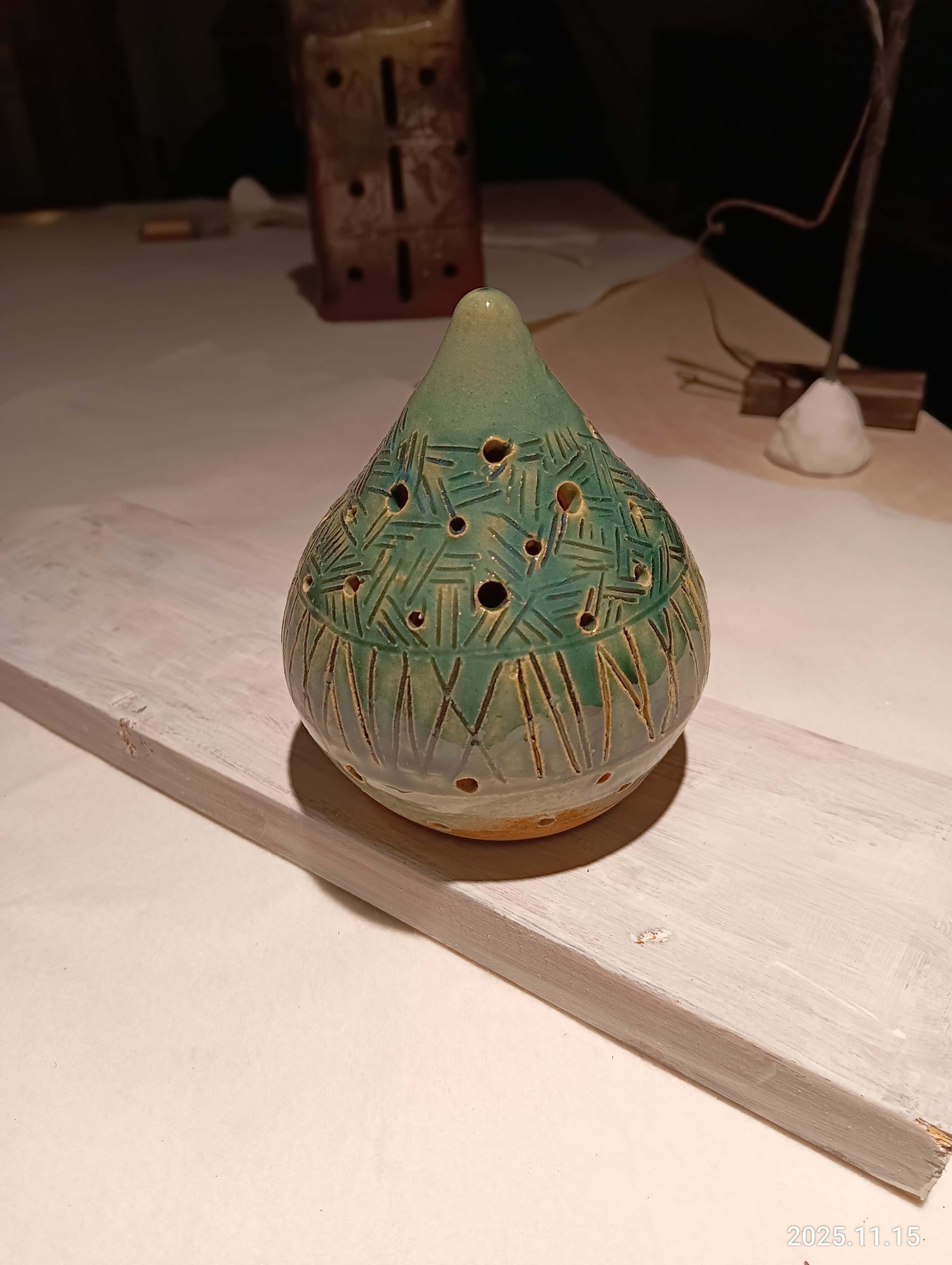 当工房オリジナルのハンドメイドの陶器ランプシェード。温かみのある雫型のランプシェードです。