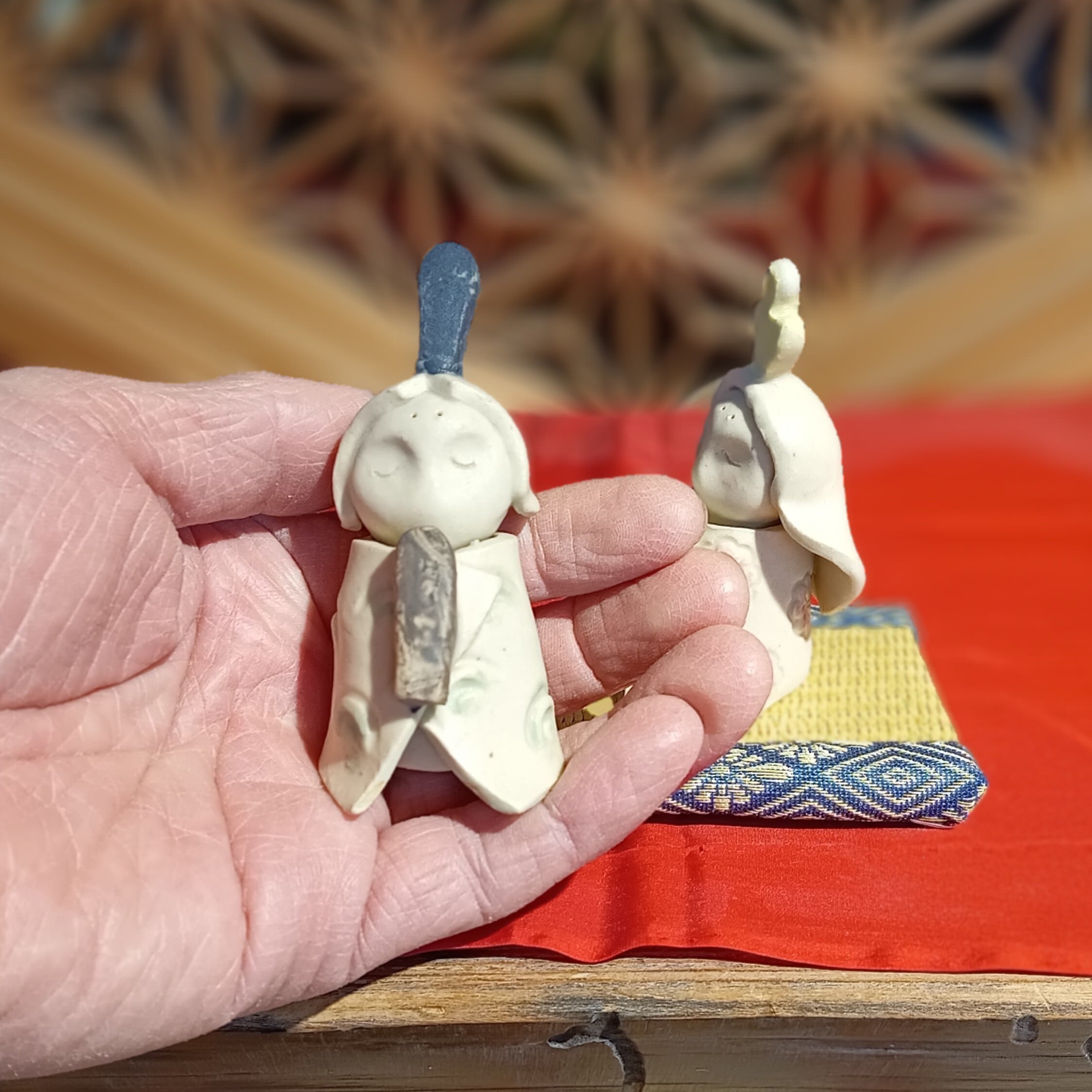 手のひらに乗るサイズの夫婦セット人形です。