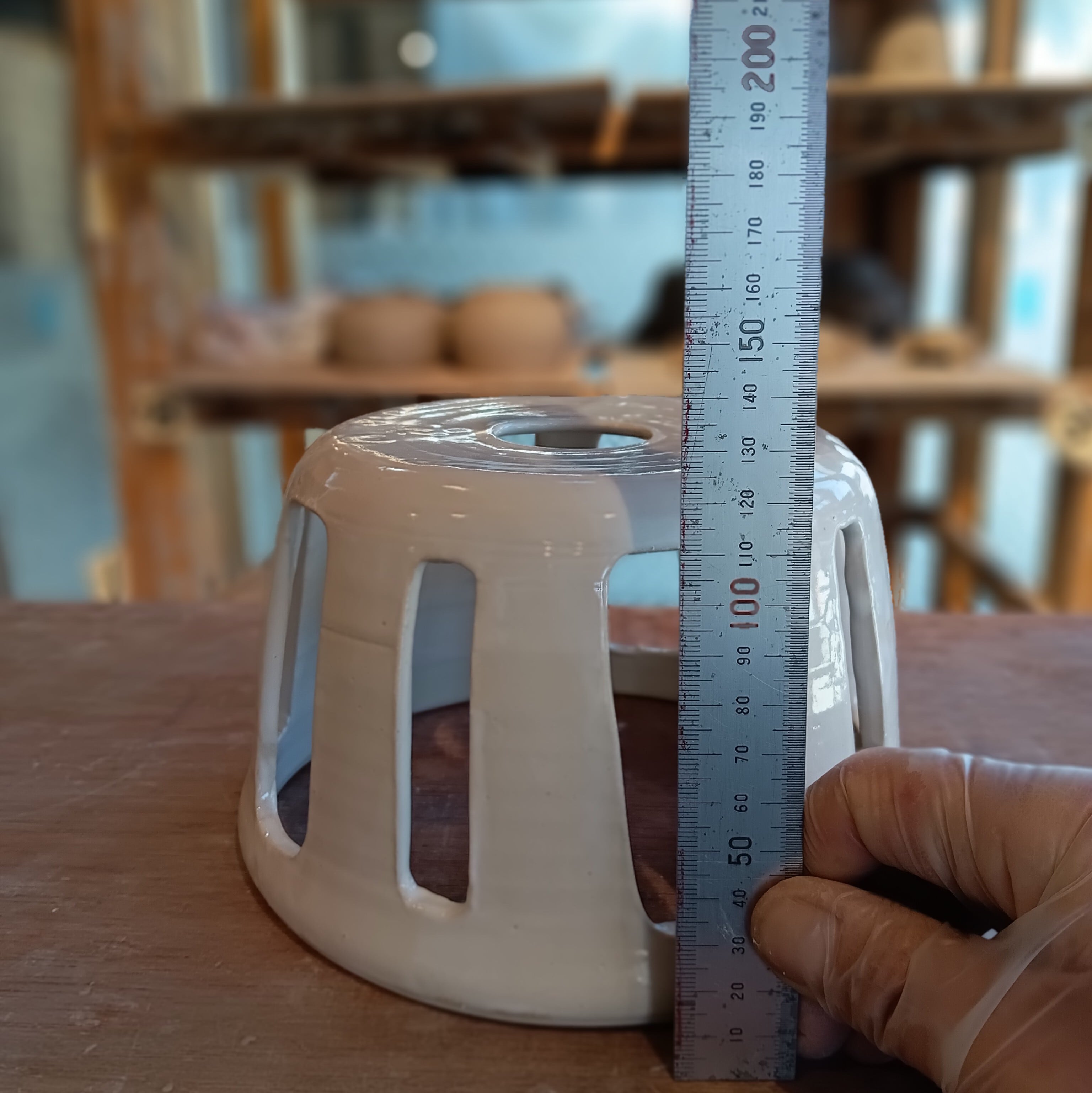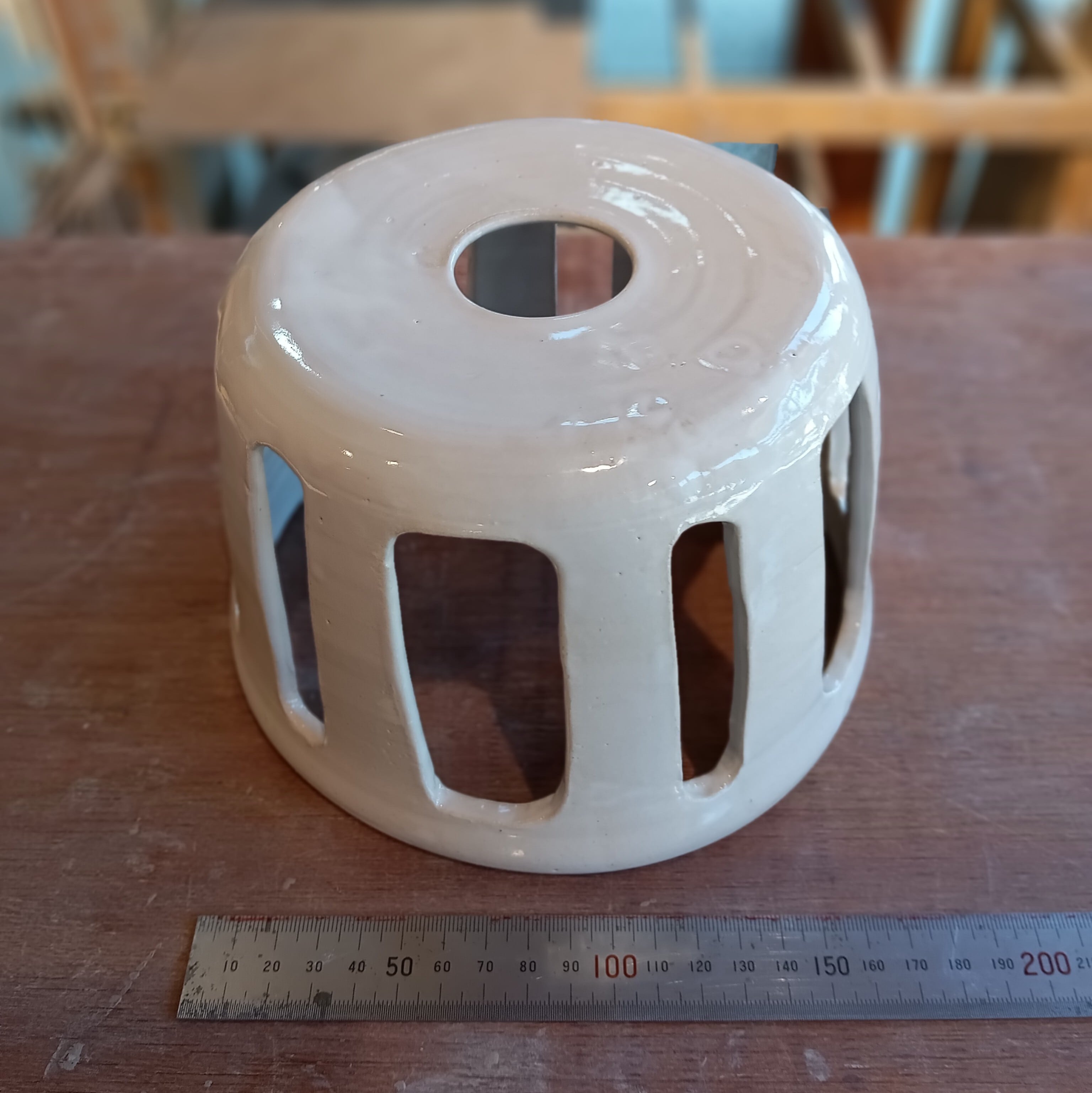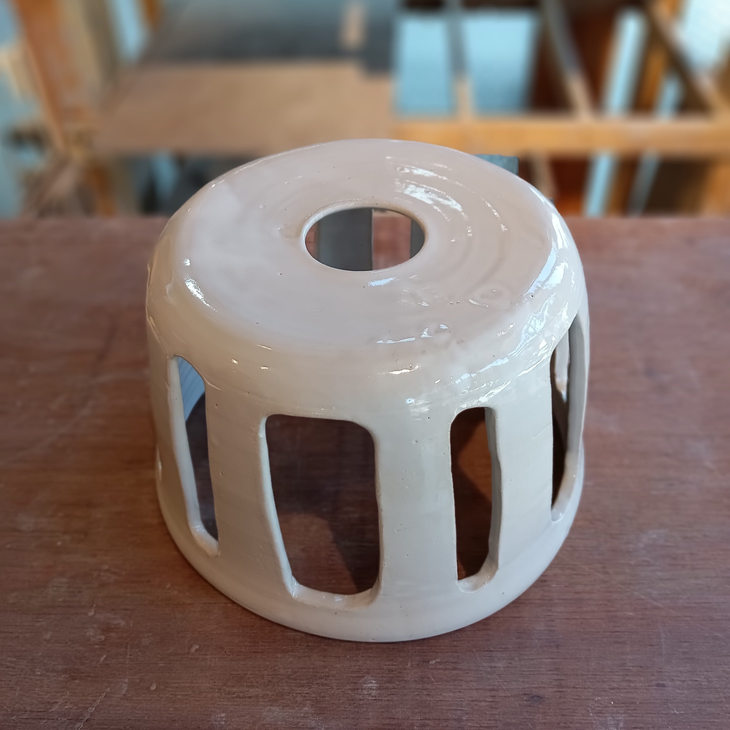 陶器製ランプシェード(ステンドグラス嵌め込み)「乳白釉 タイプA」