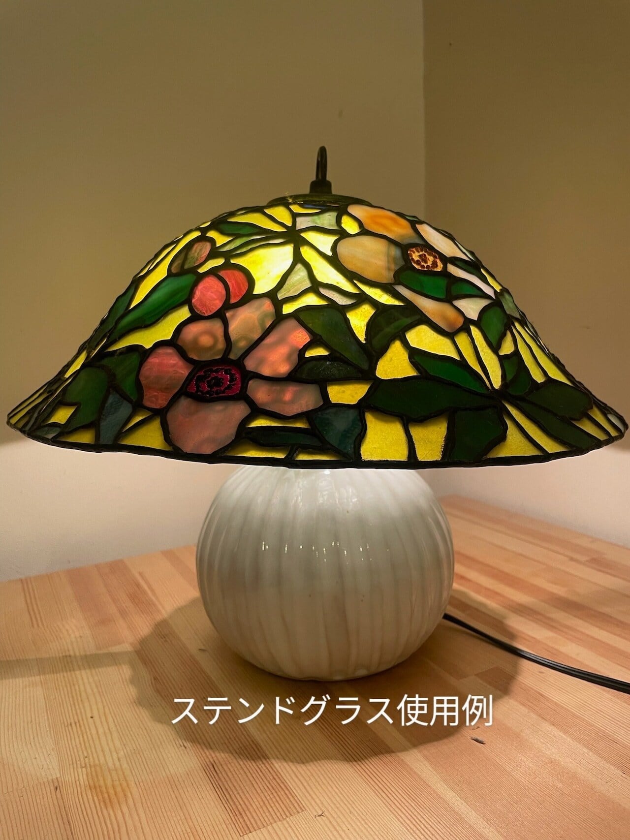 国産手造り陶器製のステンドグラスランプベース。
